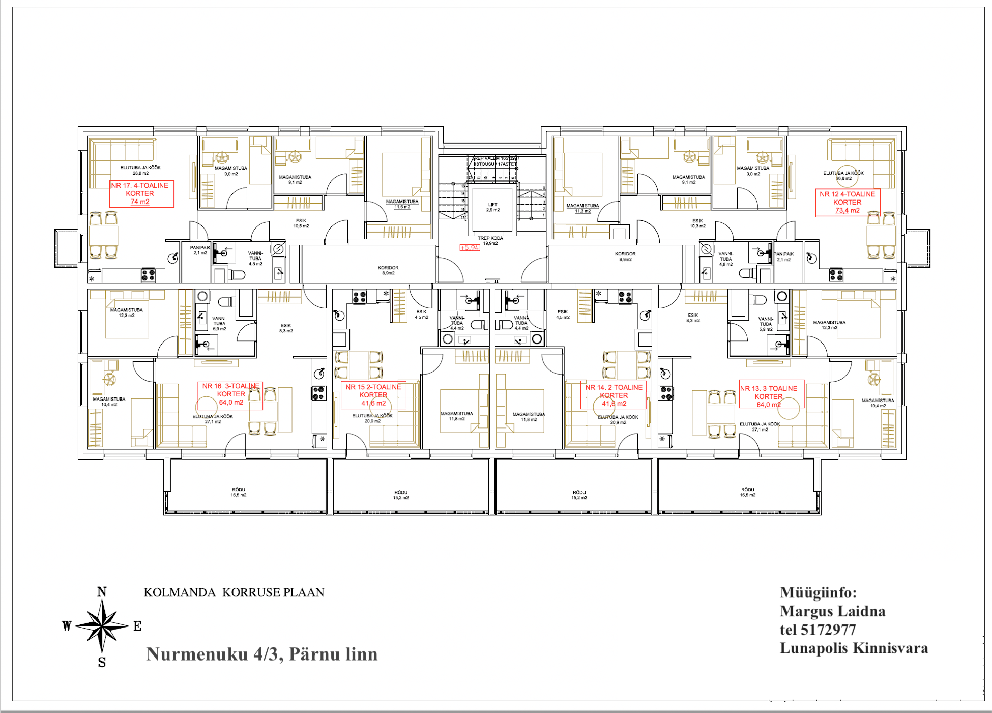 Lisaks on Nurmenuku 4/3 ja 3/3 majades saadaval veel mitmeid erineva suuruse ja planeeringuga kortereid. Kui täpsustad oma soovid, leian sulle parima sobiva lahenduse ja korraldan ka teiste vabade korterite näitamise.